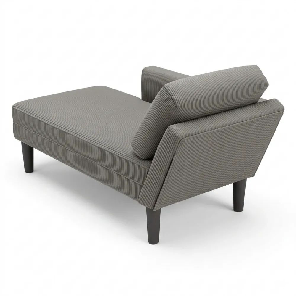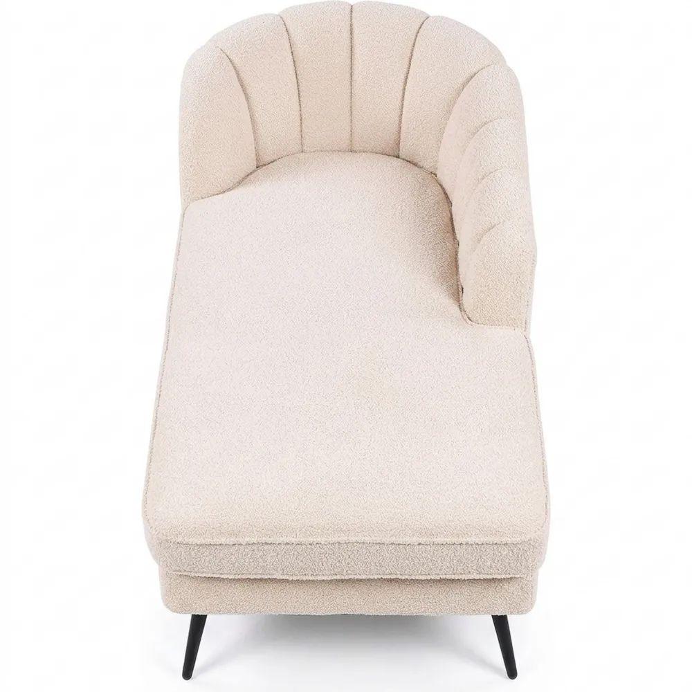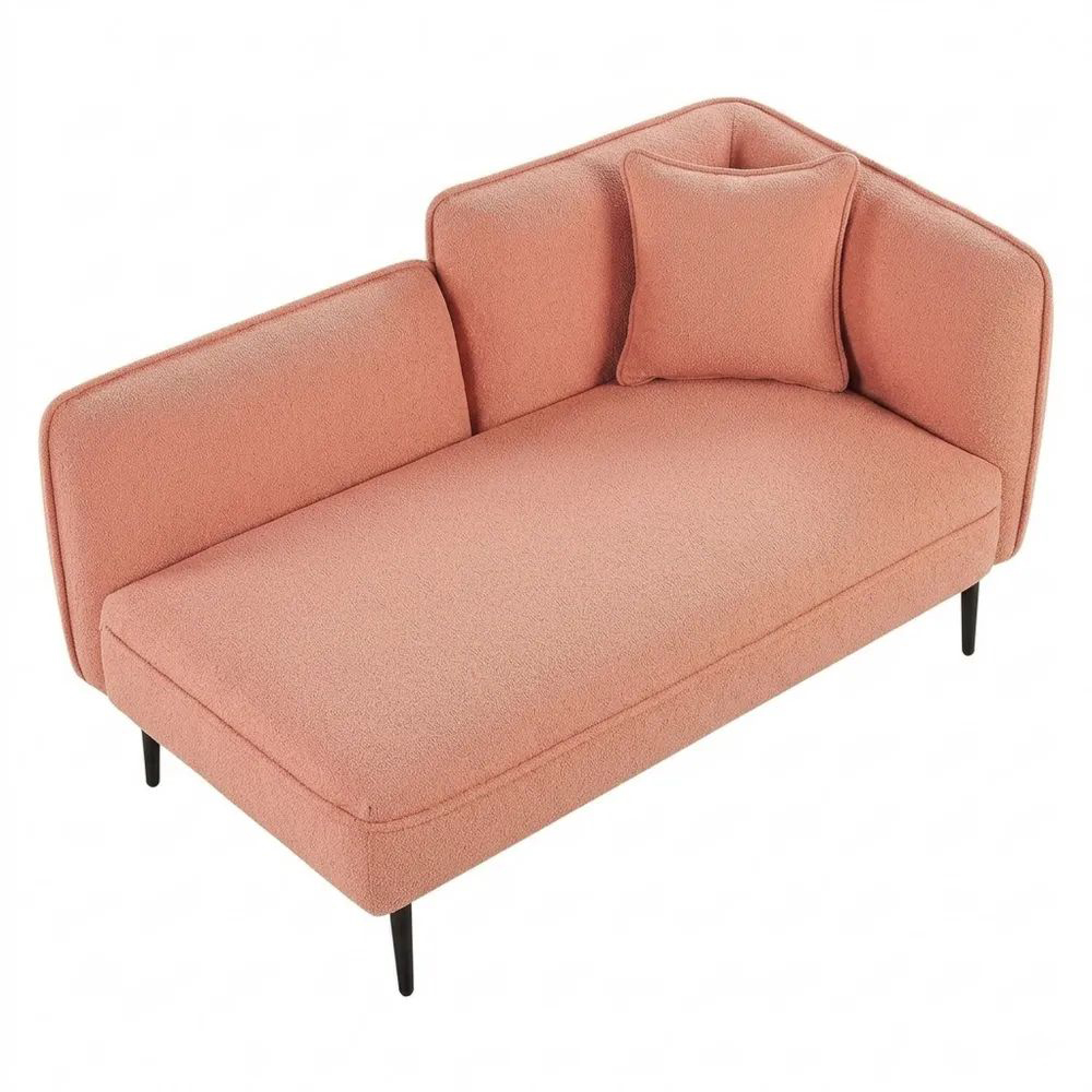 Récamiere mit Bouclé-Stoffpolsterung und Zierkissen. Ausführung: rechtsseitig